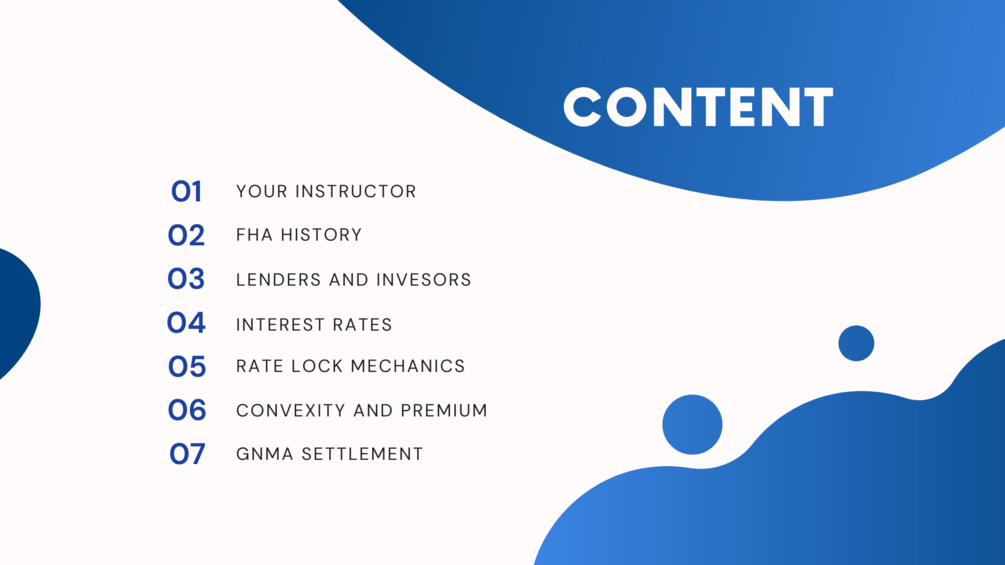 The rate-lock process is a black box of mystery and intrigue. It involves knowing how investors think, what economic data points affect interest rates, and what a lender is trying to achieve through a bond sale. The securities market for Ginnie Mae TBA's is very small--only a handful of buyers--and the lender reps who manage the process are paid handsomely. This course will introduce you to the fundamental elements of the practice, so you can facilitate Best Execution for your HUD loan, whether borrower or lender, and maybe become more valuable to the company you work for.